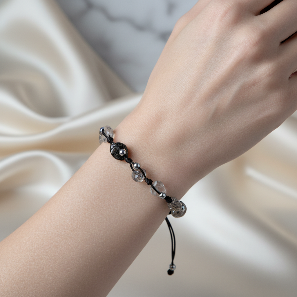 Rutilli Kuvars Natürel Kesim Doğal Taş Makrome Bileklik – Unisex El İşçiliği
