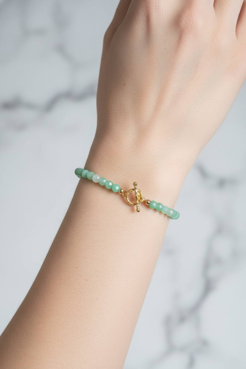 Amazonit Fasetli Doğal Taş Bileklik – Altın Kaplama Detaylı, Unisex Şık Tasarım