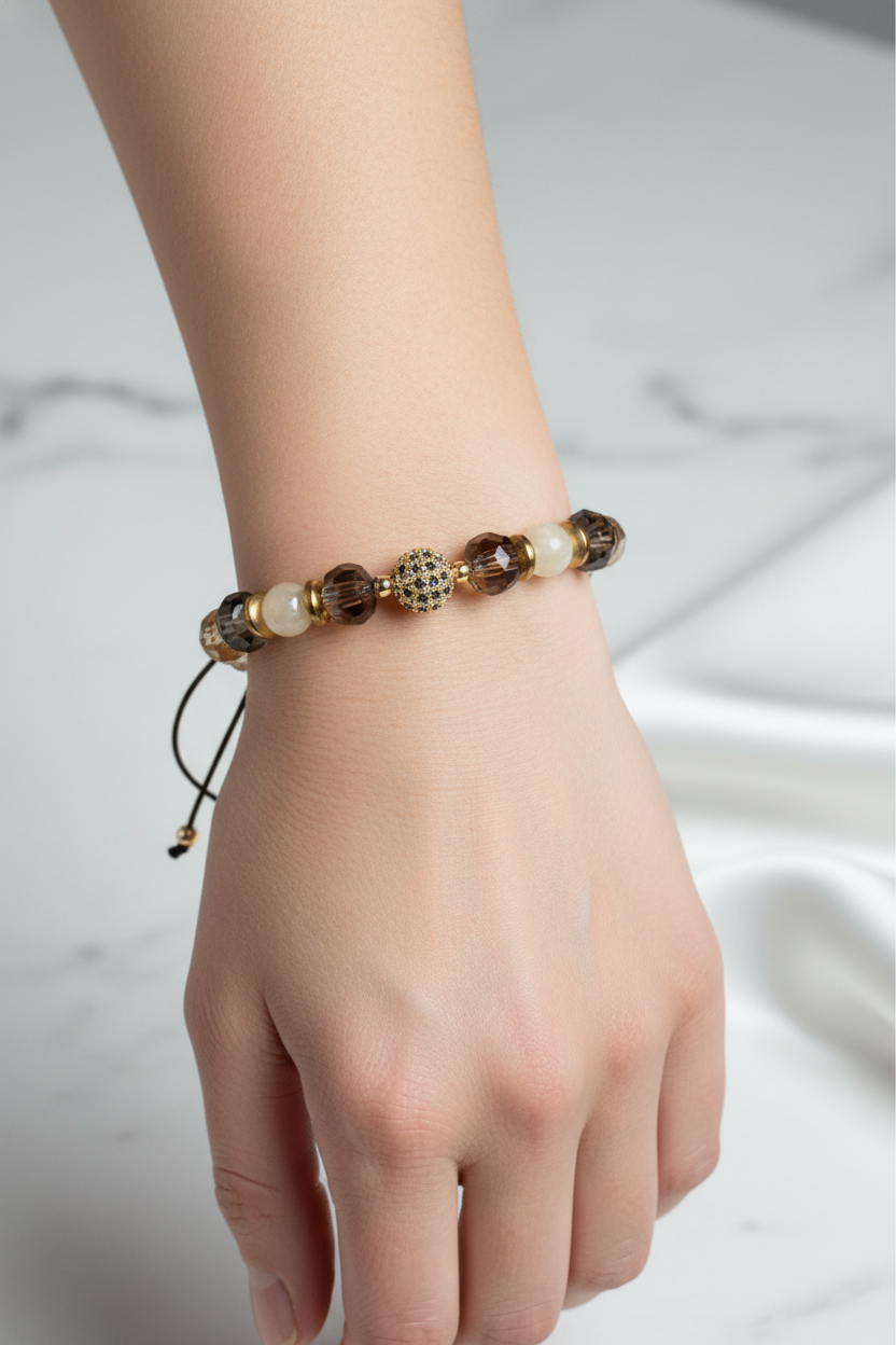 Dumanlı Kuvars, Sitrin ve Hematit Doğal Taş Bileklik – Unisex Şık Tasarım