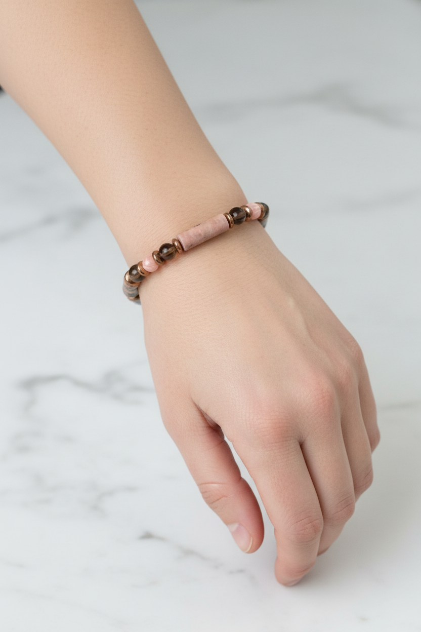 Rodonit – Rodokrosit – Hematit Doğal Taş Bileklik – Özel Tasarım