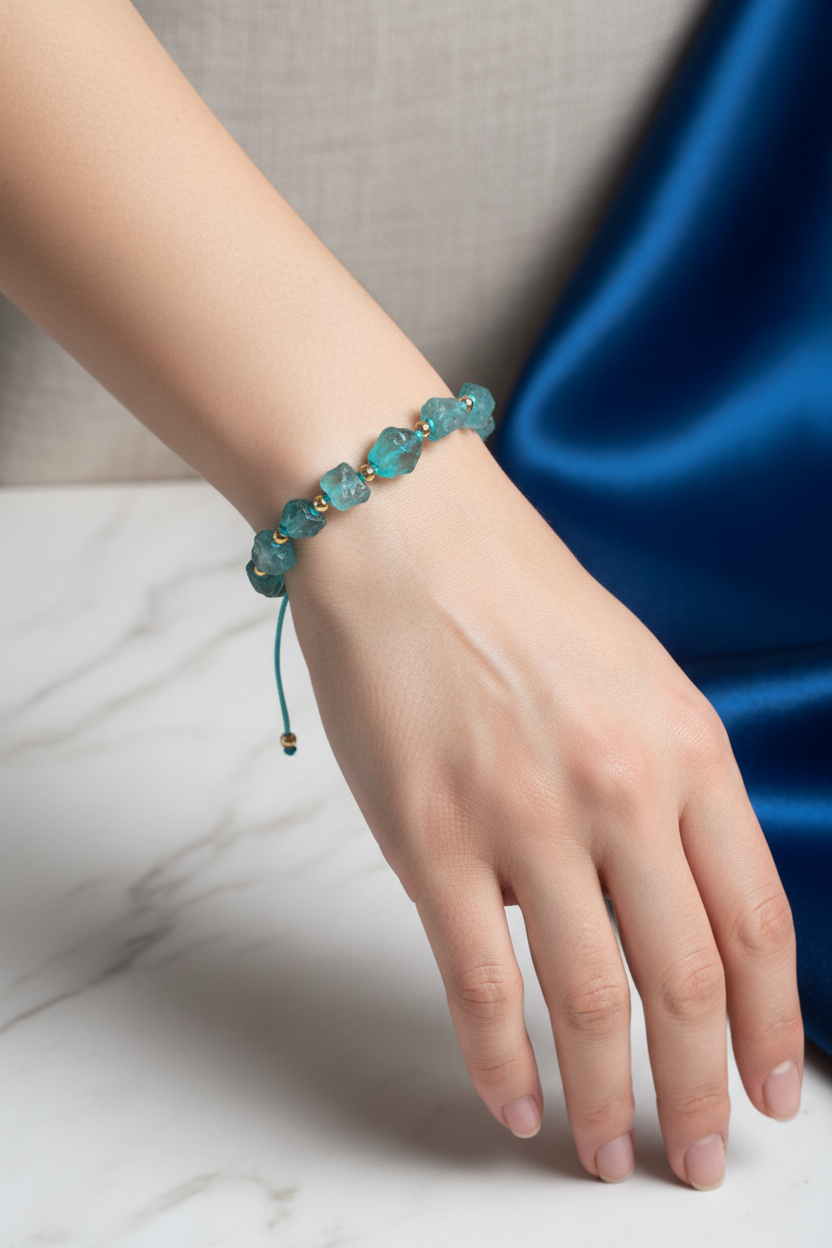 Ham Apatit Doğal Taş Bileklik – Ayarlanabilir Unisex Tasarım