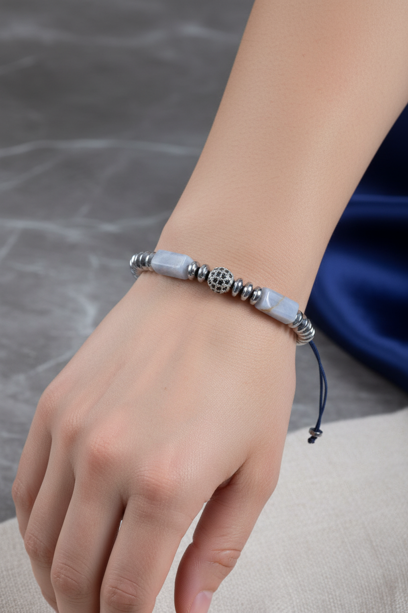 Kalsedon ve Hematit Doğal Taş Bileklik – Unisex Şık Tasarım