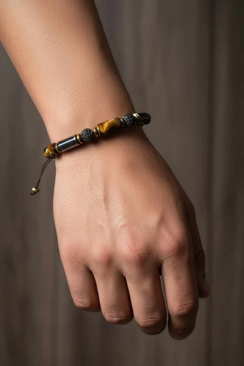 Kaplan Gözü ve Hematit Doğal Taş Bileklik – Unisex Şık Tasarım