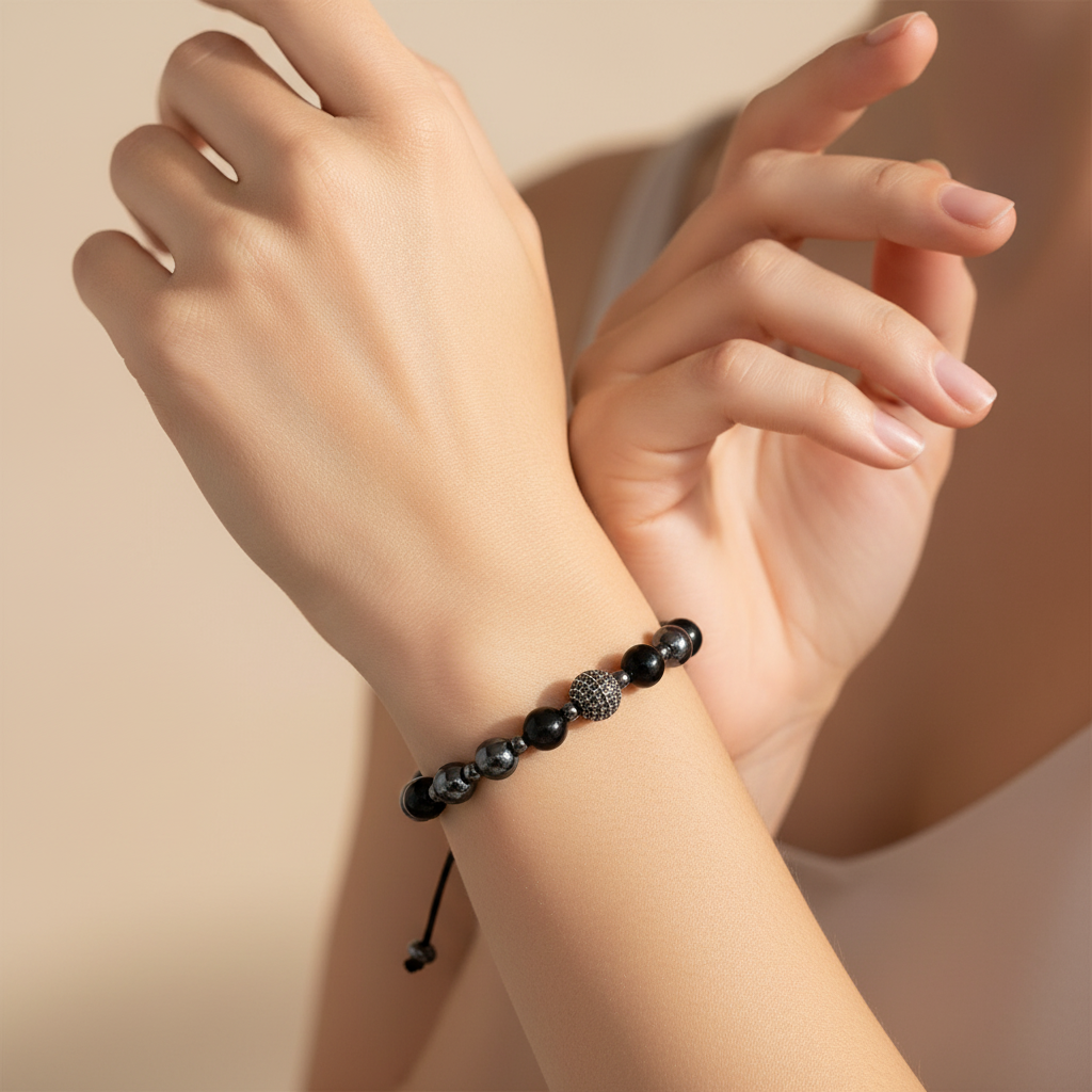 Obsidyen, Hematit Gümüş Aparat Doğal Taş Makrome Bileklik