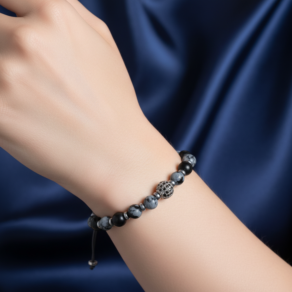 Obsidyen, Hematit Zirkon Aparat Doğal Taş Makrome Bileklik