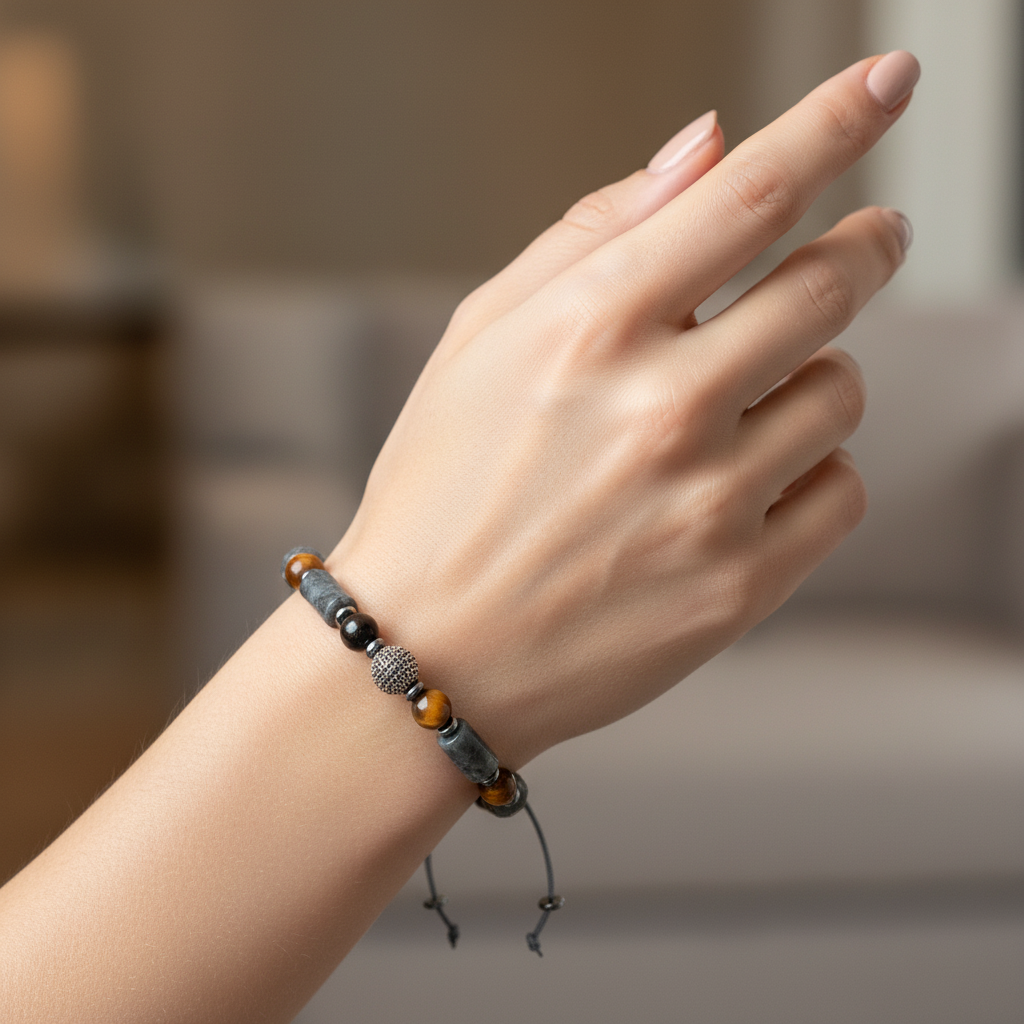 Spektrolit, Kaplan Gözü, Labradorit, Hematit Gümüş Aparat Doğal Taş Makrome Bileklik