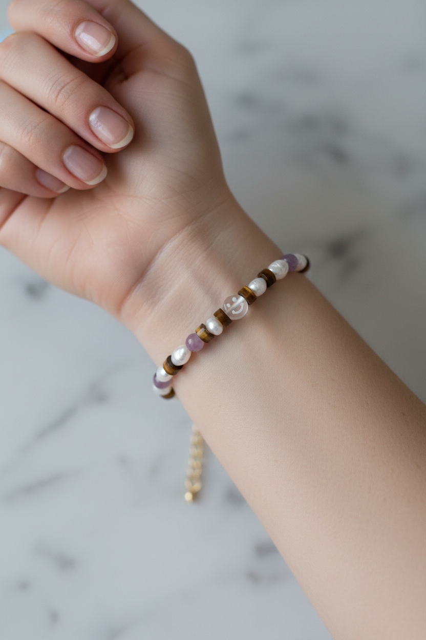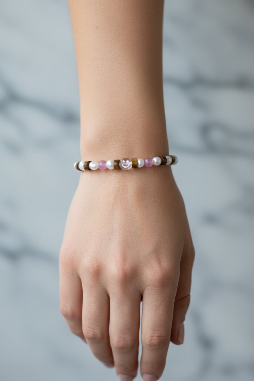 Yakut, İnci, Kaplan Gözü Gümüş Kapama Doğal Taş Bileklik
