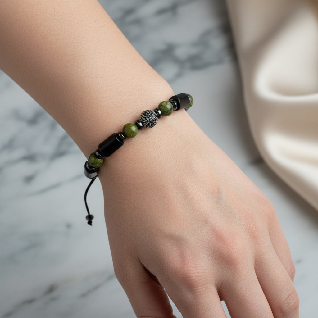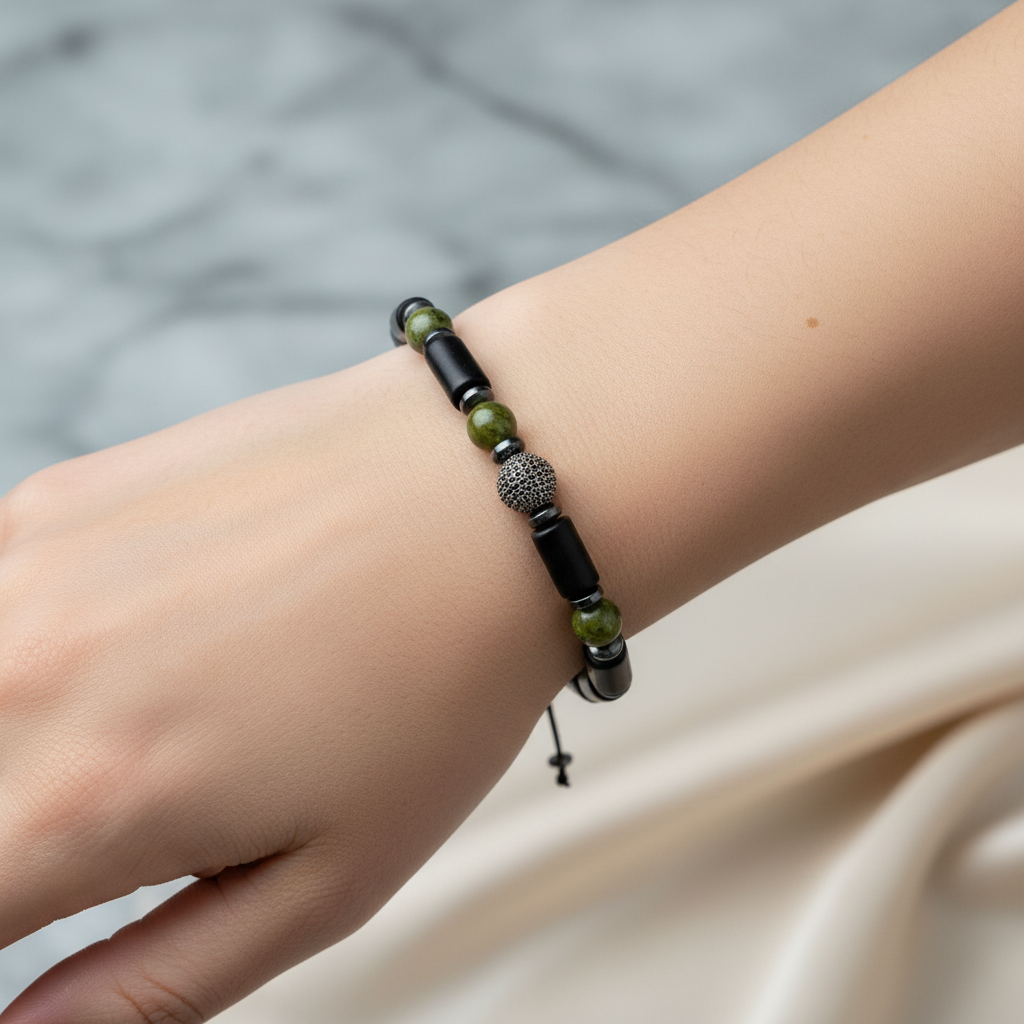Zebercet, Şungit, Hematit Gümüş Aparat Doğal Taş Bileklik