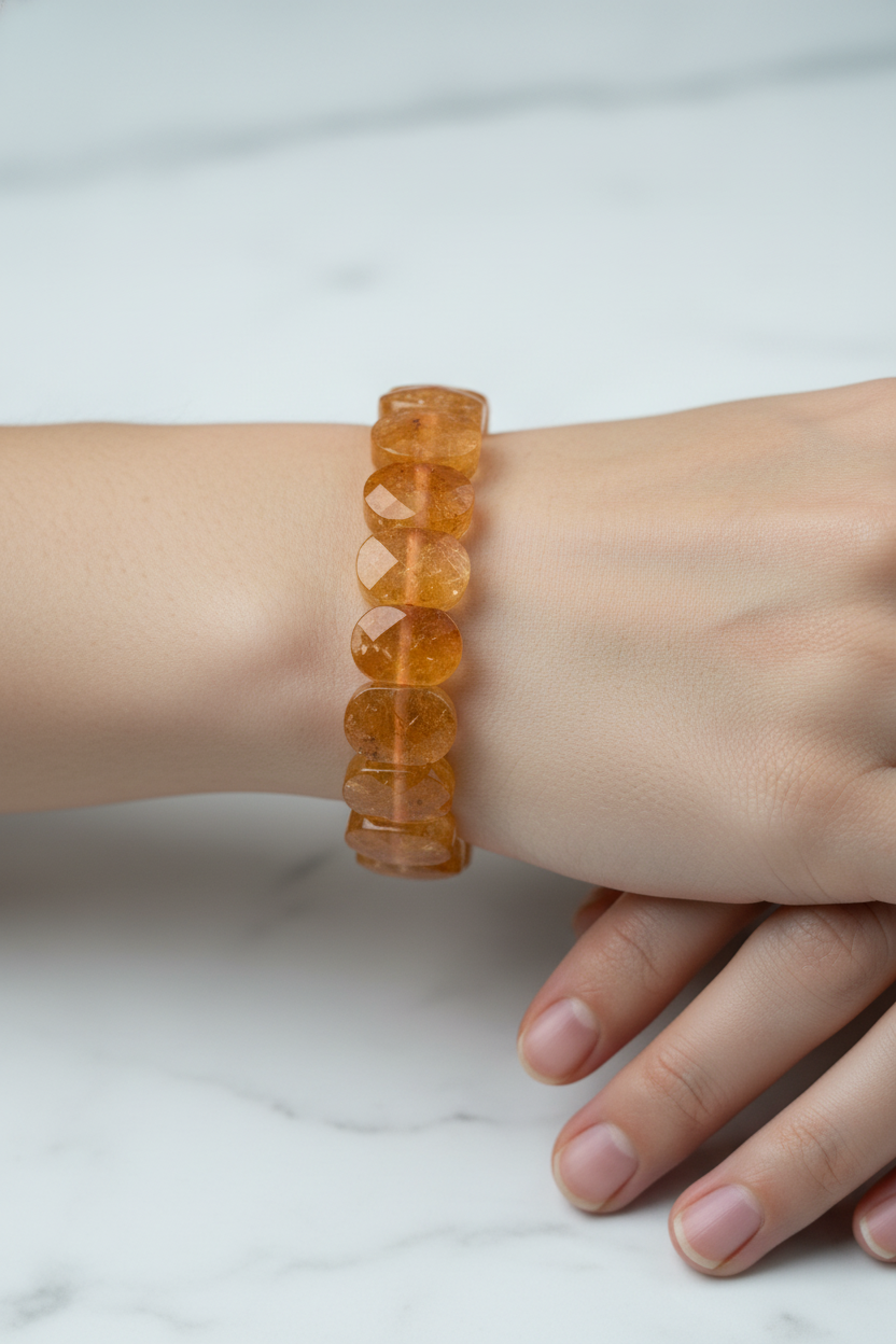 Sitrin Doğal Taş Geniş Kesim Bileklik