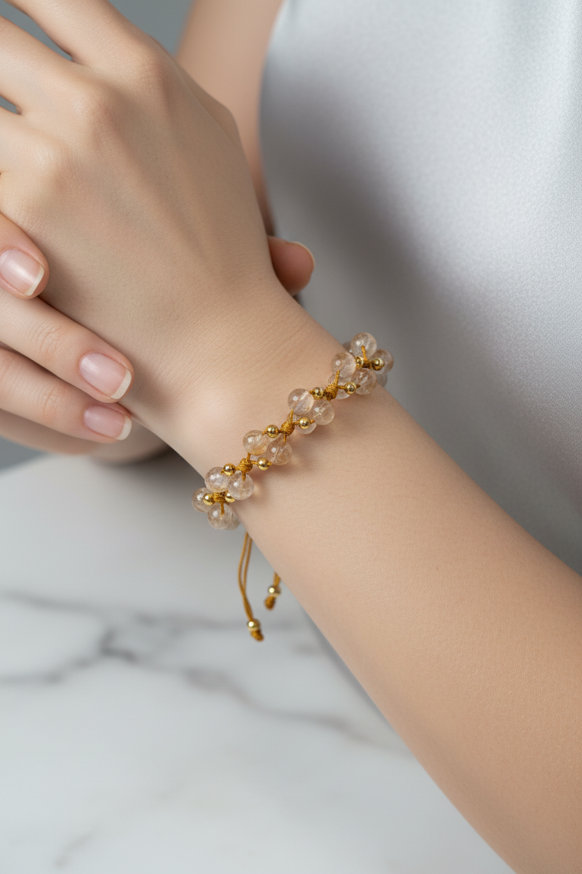 Sitrin Doğal Taş Merdiven Kapama Bileklik – Ayarlanabilir İpli Tasarım