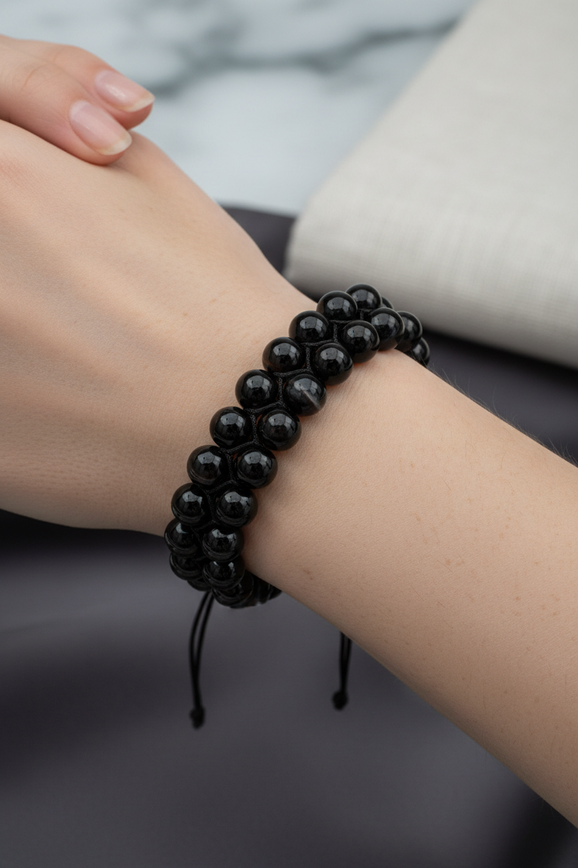 Siyah Göz Akik 8mm Çift Sıra Makrome Doğal Taş Bileklik