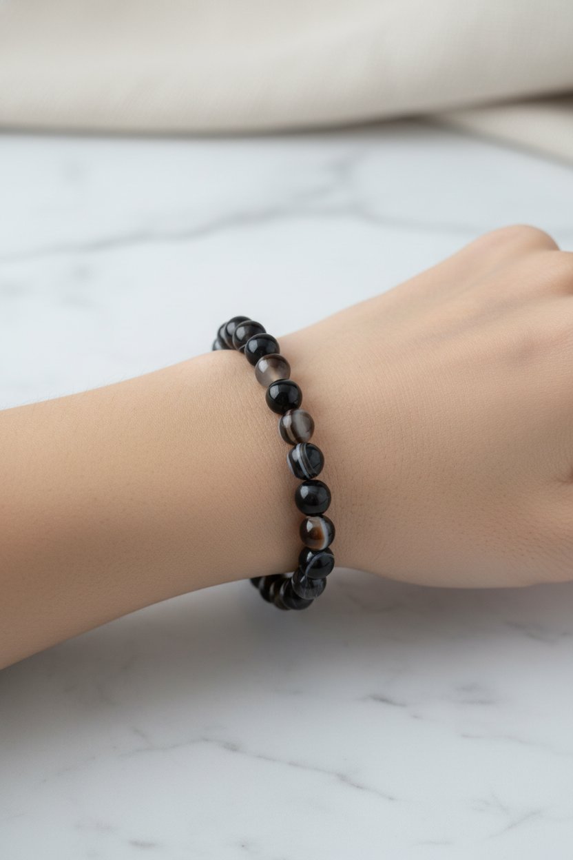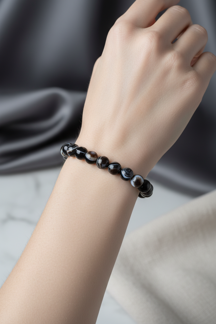 Siyah Göz Akik 8mm Doğal Taş Bileklik