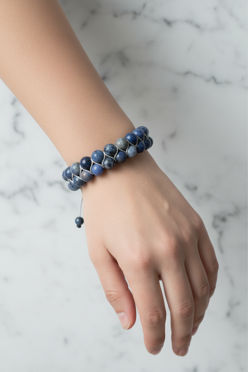 Sodalit 8mm Çift Sıra Makrome Doğal Taş Bileklik