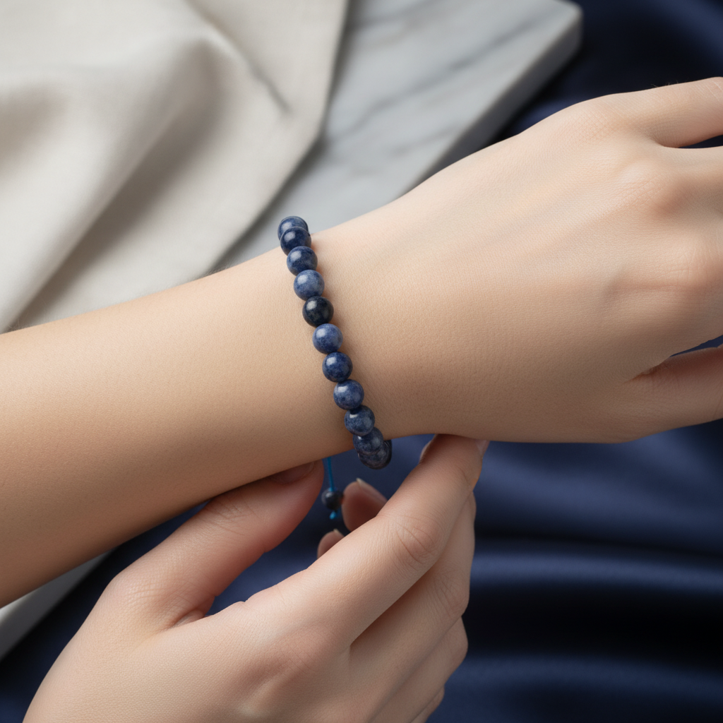 Sodalit 8 mm Merdiven Kapama Doğal Taş Bileklik – El İşçiliği