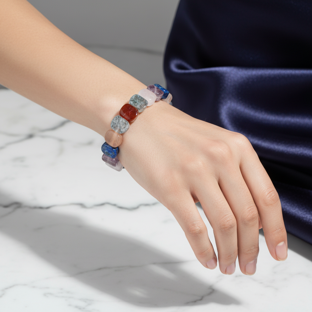 Terazi Burcu Doğal Taş Bileklik – Ametist, Dumanlı Kuvars, Güneş Taşı, Akik, Labradorit, Lapis Lazuli & Pembe Kuvars