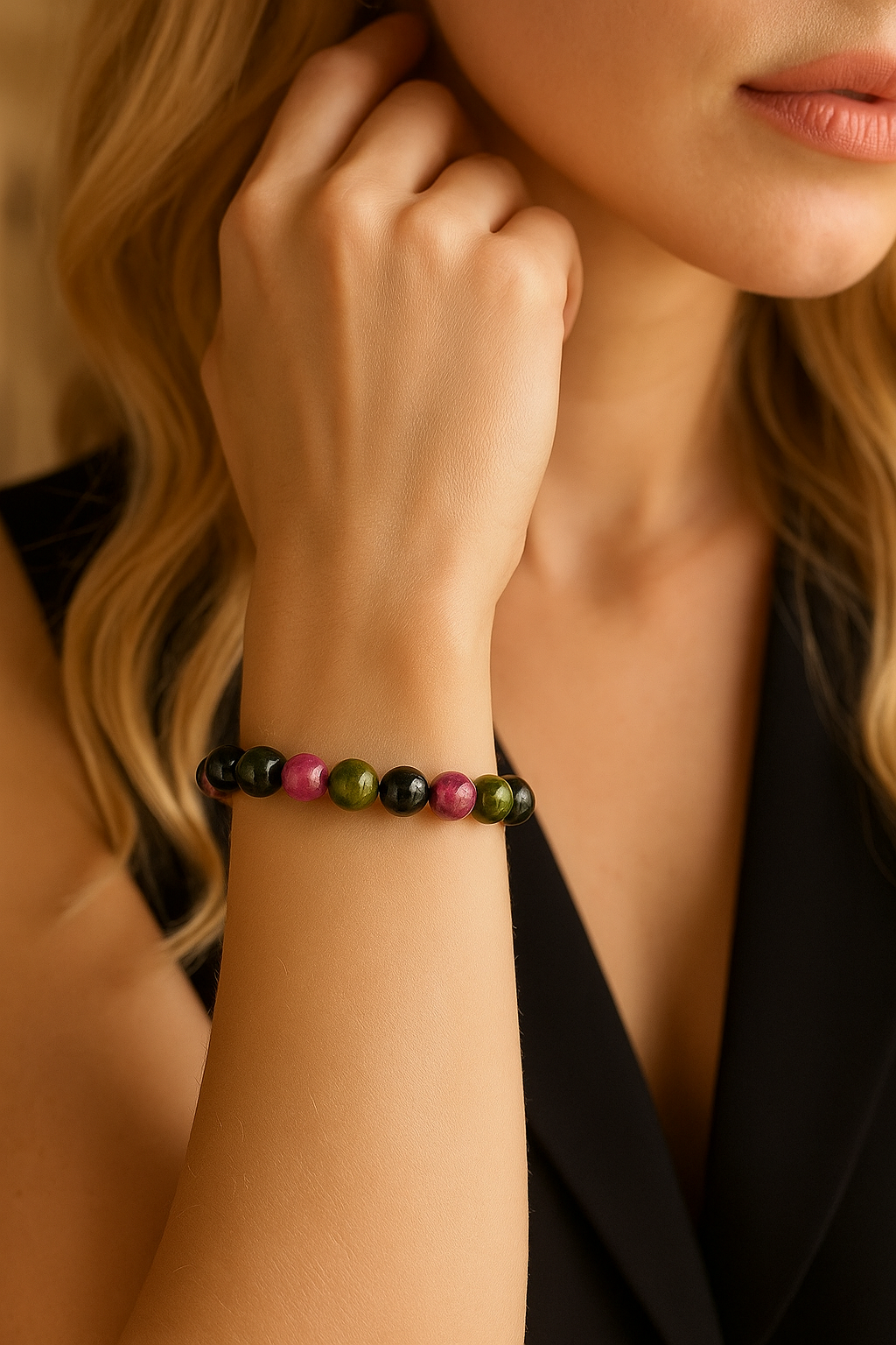 Turmalin Doğal Taş Bileklik – 10 mm Küre Kesim
