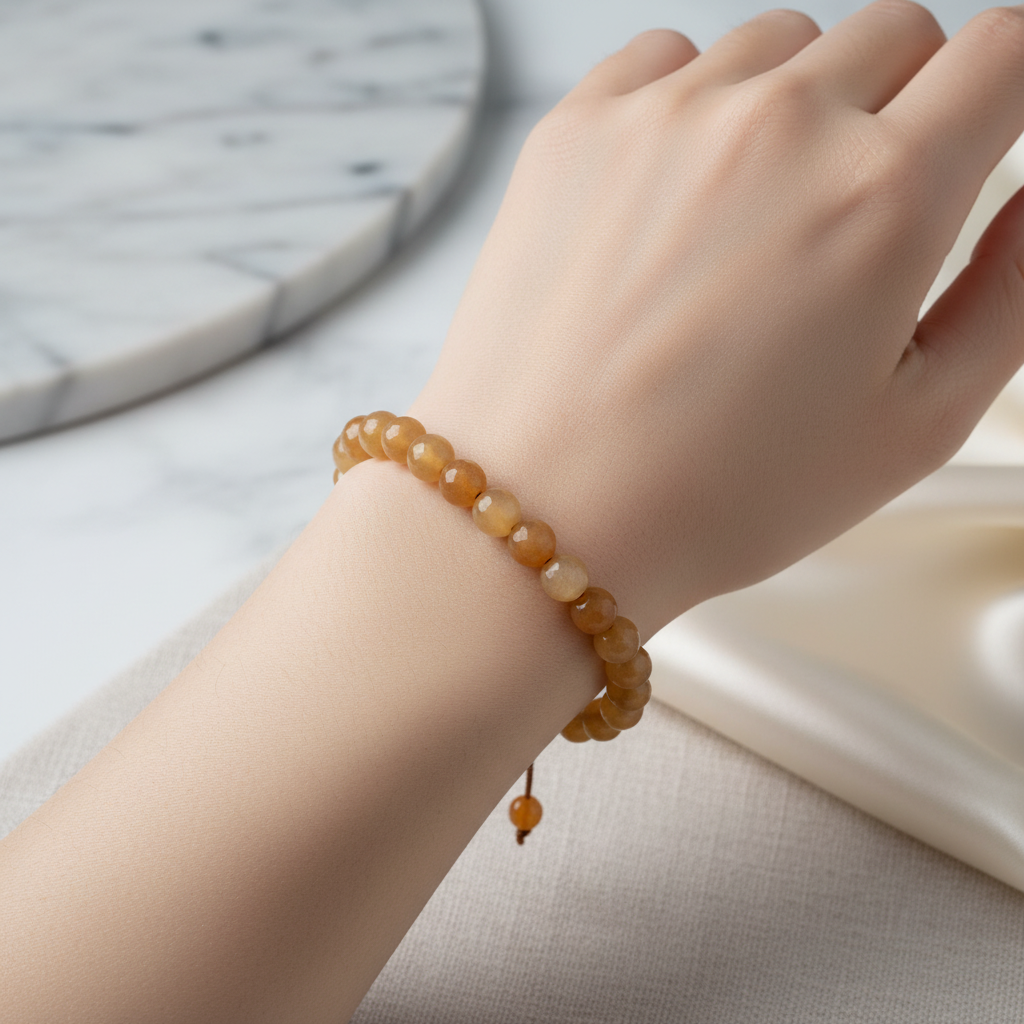 Turuncu Aventurin 6 mm Merdiven Kapama Doğal Taş Bileklik, doğal taşların enerjik tonlarını zarif bir tasarımla buluşturan özel bir aksesuardır. 6 mm ölçüsündeki turuncu aventurin taşları özenle dizilmiş, merdiven kapama detayıyla modern ve estetik bir görünüm kazanmıştır. El işçiliğiyle hazırlanmış bu bileklik, günlük kullanımda canlı bir şıklık, özel günlerde ise sofistike bir tamamlayıcı aksesuar olarak tercih edilebilir.