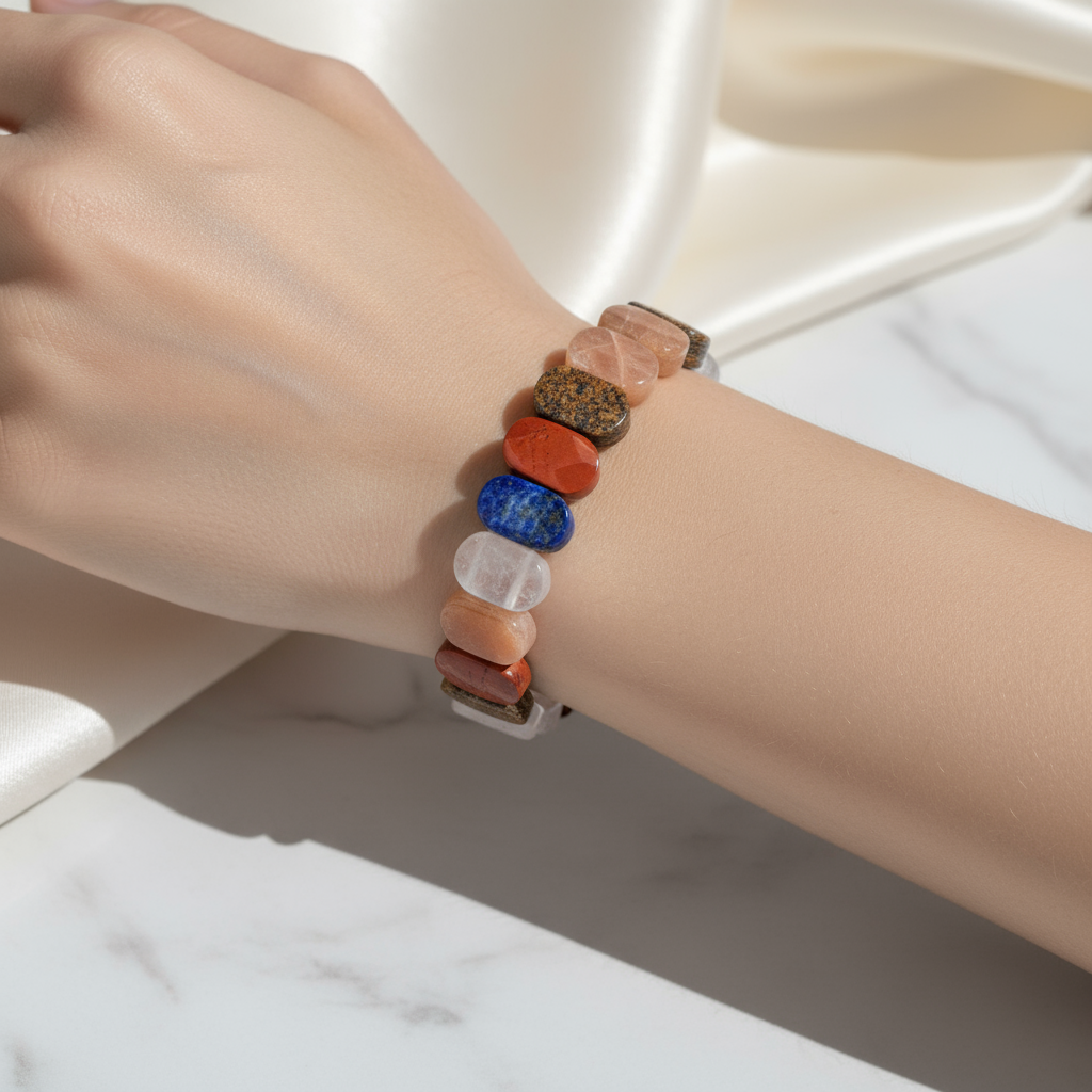 Yay Burcu Doğal Taş Bileklik – Ay Taşı, Bronzit, Güneş Taşı, Jasper, Lapis Lazuli & Selenit