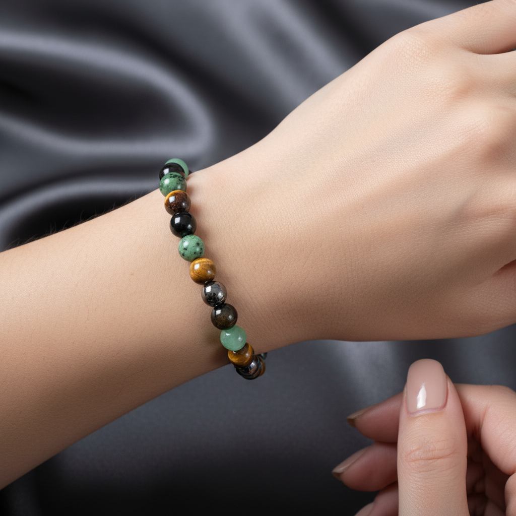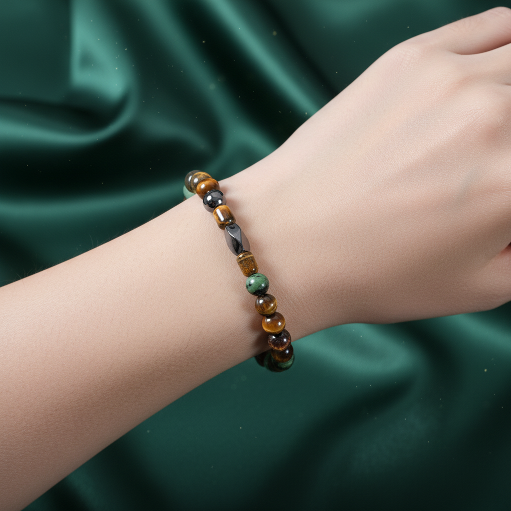 Yengeç Burcu Doğal Taş Bileklik – Anyolit, Golden Obsidyen, Kaplan Gözü & Yeşil Aventurin
