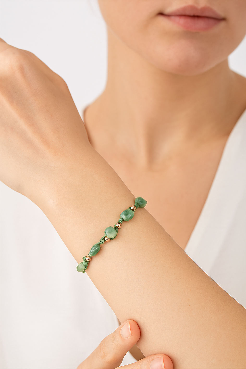 Yeşil Aventurin Natürel Kesim Doğal Taş Makrome Bileklik