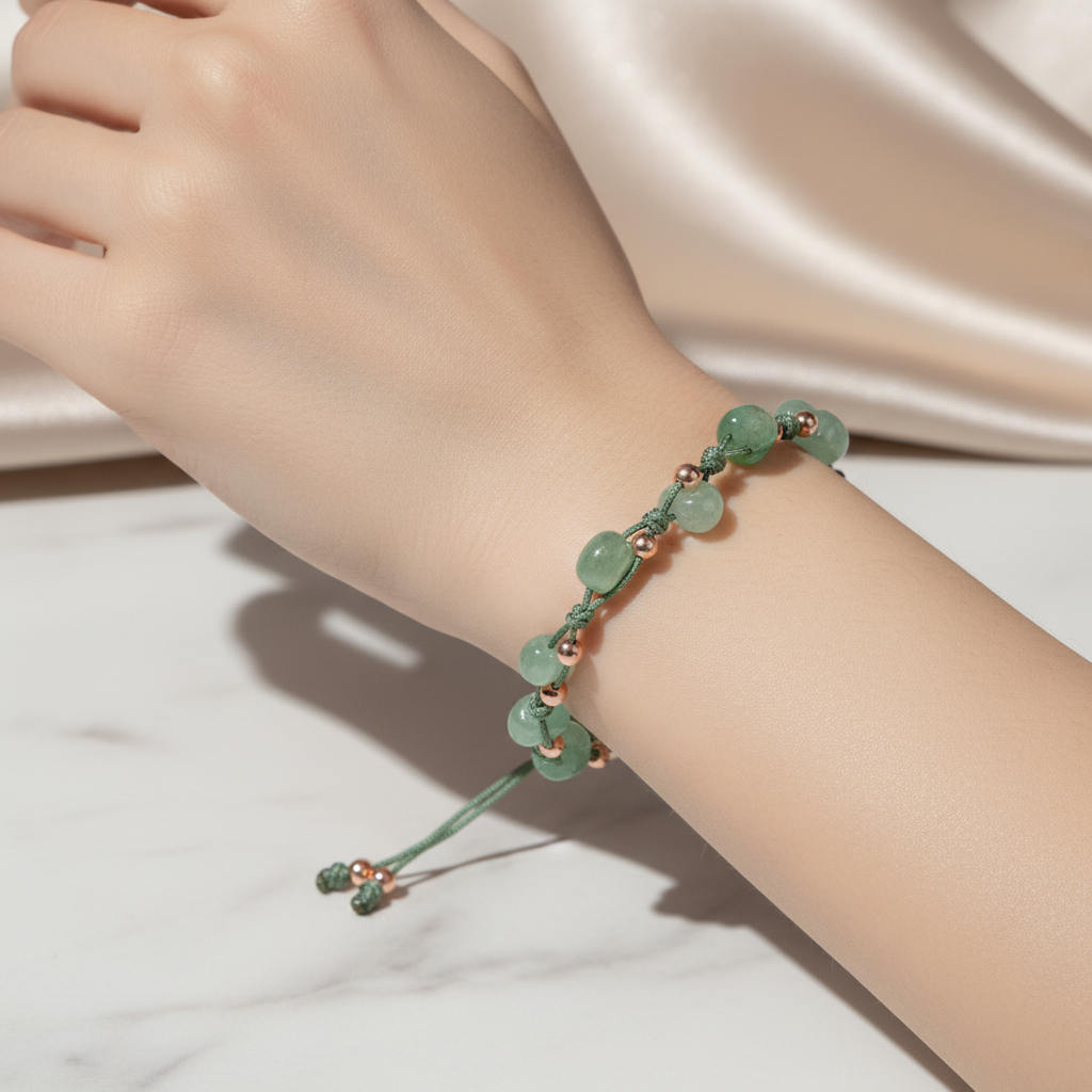 Yeşil Aventurin Natürel Kesim Doğal Taş Makrome Bileklik – Unisex El İşçiliği