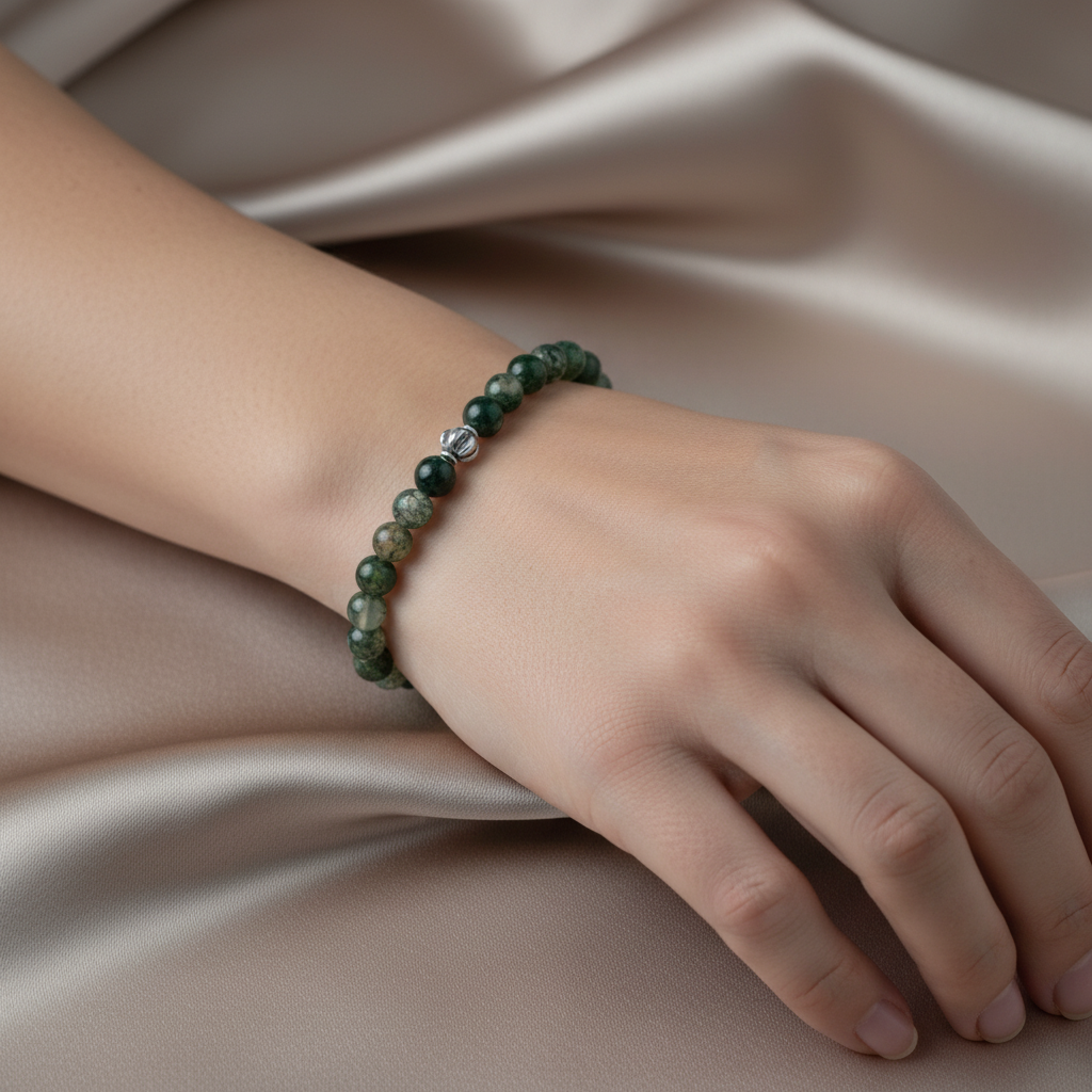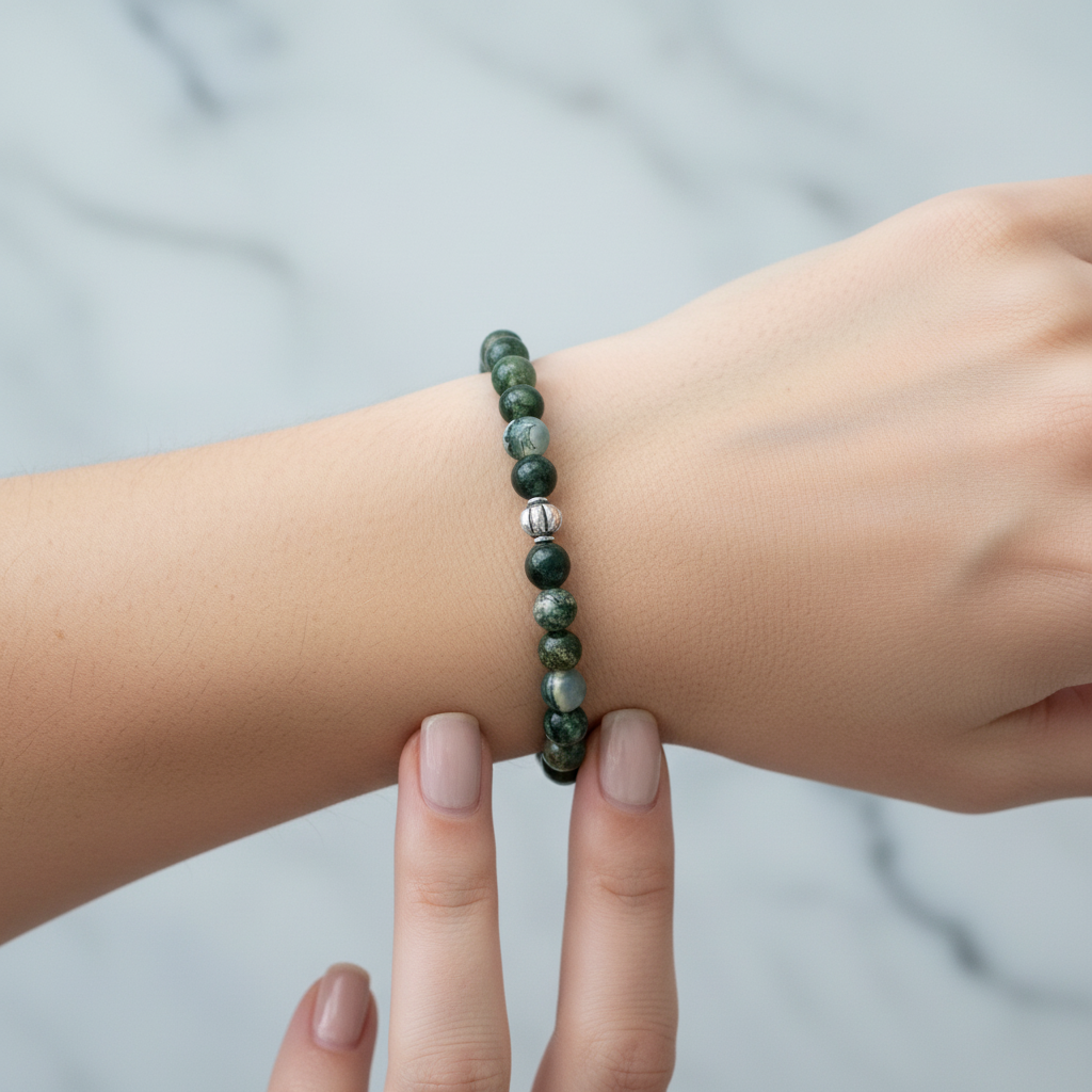 Yosunlu Akik 6mm Doğal Taş Bileklik
