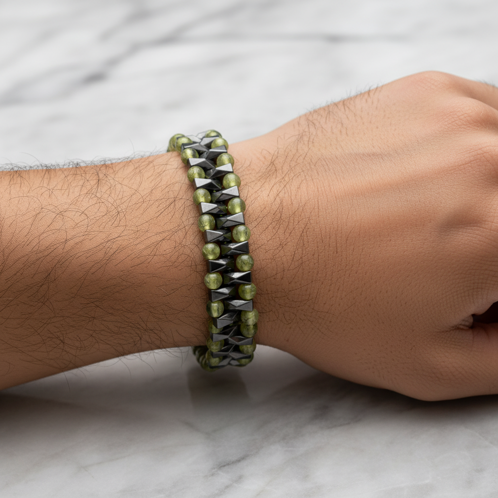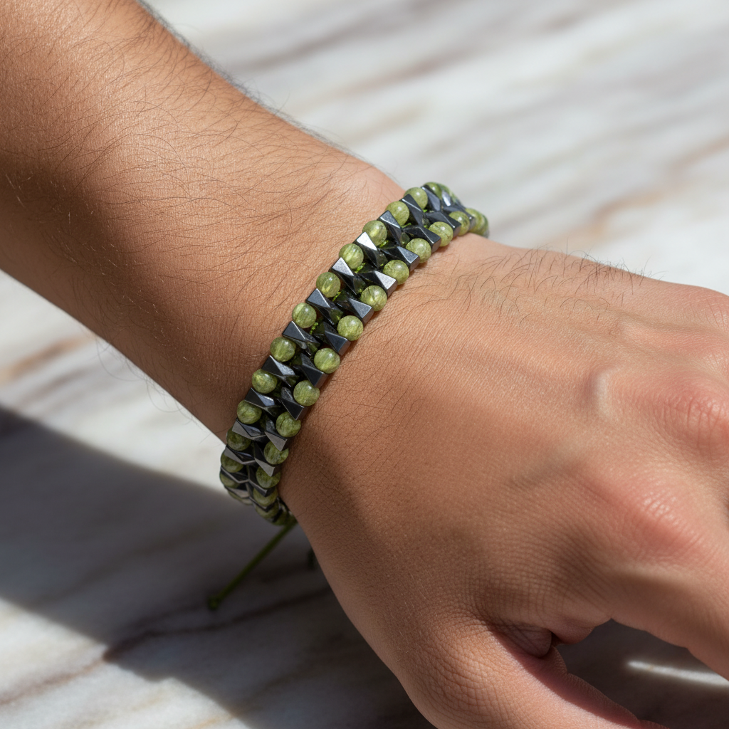 Zebercet & Hematit Doğal Taş Erkek Makrome Bileklik – Özel Tasarım